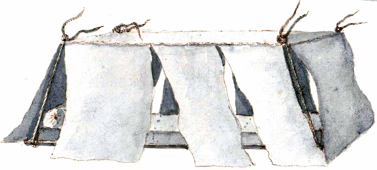 Para todos los demás alojamientos se proveían catres de lona colgados. Estos catres de lona eran los comúnmente llamados coys, que eran unas hamacas guarnecidas con barrotes de media vara de largo a la cabeza, con bolinas y dos ganchos.