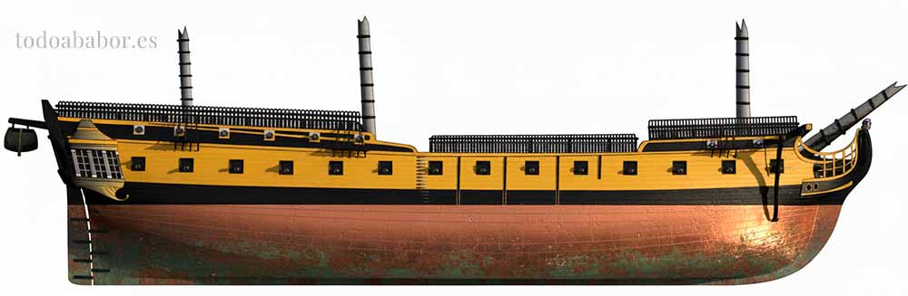 Fragata de quinto orden de 34 cañones. Ilustración de Todo a babor.