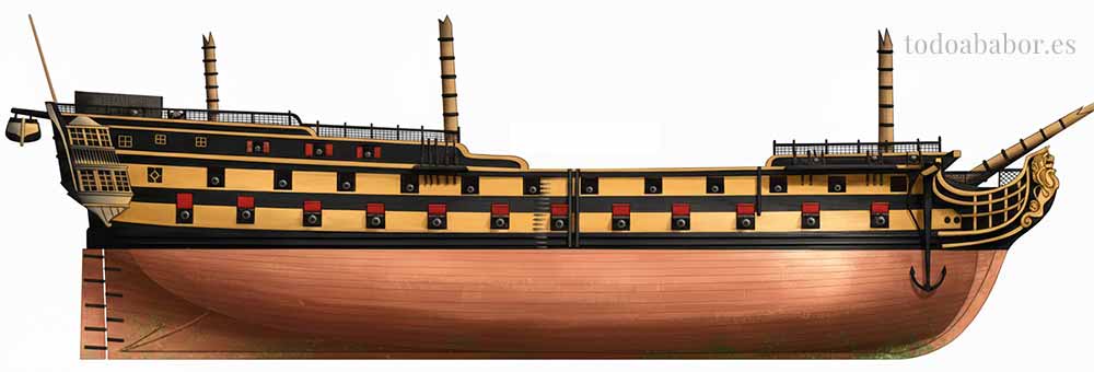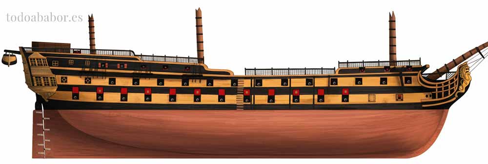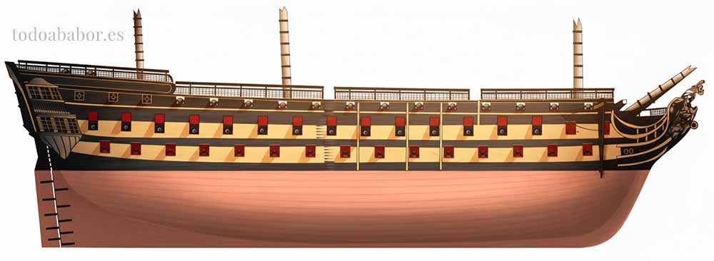 Navío de primer orden y más de 100 cañones. Ilustración de Todo a babor.