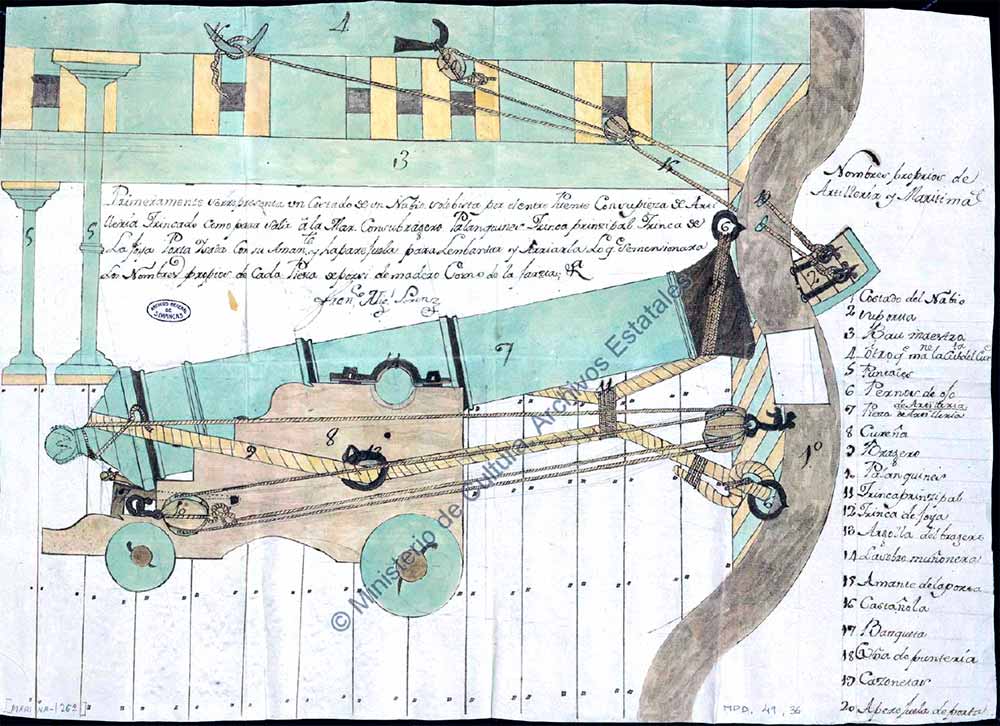 Planos de cañones españoles del siglo XVIII hay muchos; pero con el cañón, su cureña y su jarcia completa, no tantos. Muy pocos, la verdad.