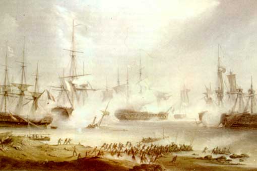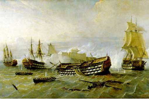El 2 de abril de 1801 una flota británica de 12 navíos, 6 fragatas y 4 barcos menores, atacó a la flota danesa que se encontraba en Copenhagen, compuesta por 7 navíos y 18 barcos menores. Fue un combate muy duro al ser luchado en un espacio reducido por tantos cañones, en el que 4 navíos británicos (incluyendo el Elephant de Nelson) quedaron varados. La flota danesa fue casi aniquilada a costa de muchas bajas en ambos bandos.