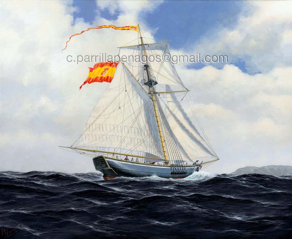 Cuadro que representa a una de las unidades de las llamadas fuerzas sutiles en las que se apoyó el resurgimiento de la, por entonces, deprimida Armada Española, hasta volver a ocupar un puesto destacado entre las armadas más importantes del mundo, de nuevo el tercero o cuarto según los autores, aunque esta vez a bastante distancia de las dos primeras, Gran Bretaña y Francia.